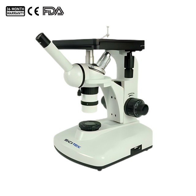 Observación de muestras de gran tamaño: el objetivo y el ocular de un microscopio metalográfico invertido están ubicados encima de la muestra, lo que le permite observar muestras de gran tamaño, lo cual es crucial para la investigación en ciencia de materiales, ya que los tamaños de las muestras a veces pueden ser muy grandes.
