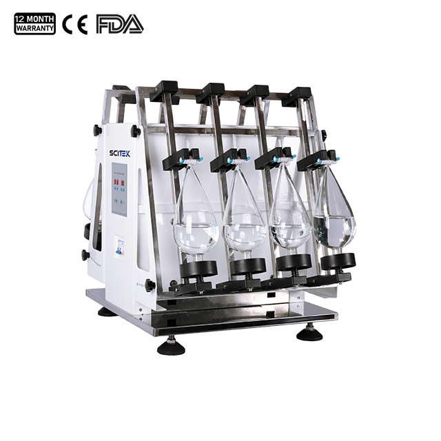 El agitador vertical es un dispositivo de agitación de doble cara que se usa comúnmente en el laboratorio para mezclar medios difíciles como líquidos viscosos, dispersiones sólidas y para extracciones líquido-líquido. La agitación vertical es importante en muchas aplicaciones, como la extracción de aceite del agua, la extracción de fenoles volátiles, la extracción de alimentos y grasas, la extracción de residuos de pesticidas, la extracción de contaminantes orgánicos del agua, la extracción de sustancias nocivas para el suelo, etc.