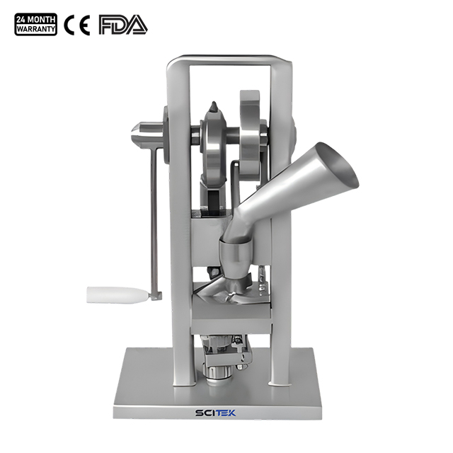 La prensa manual para tabletas de un solo punzón es una pequeña prensa manual de escritorio para tabletas con punzón continuo, que puede perforar tabletas redondas dentro de 12 mm y es adecuada para instituciones farmacéuticas, químicas, alimentarias, médicas y otros departamentos. Esta máquina tiene las ventajas de no necesita electricidad y es fácil de transportar. Se puede accionar manualmente y las tabletas requeridas se pueden obtener reemplazando moldes de diferentes especificaciones.