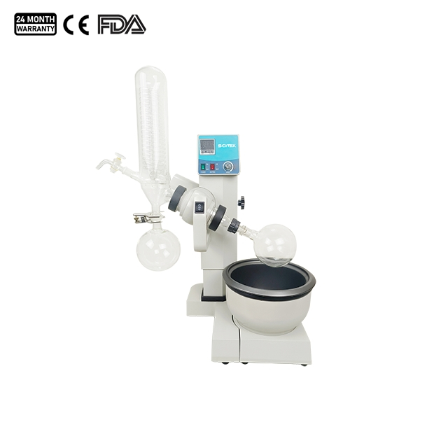 6. Condensador: Condensador vertical integrado hecho de vidrio resistente a altas temperaturas, con un diseño de doble reflujo y juntas esmeriladas esféricas, combinadas con juntas esmeriladas esféricas que reciben el matraz para un montaje y desmontaje rápido y seguro.